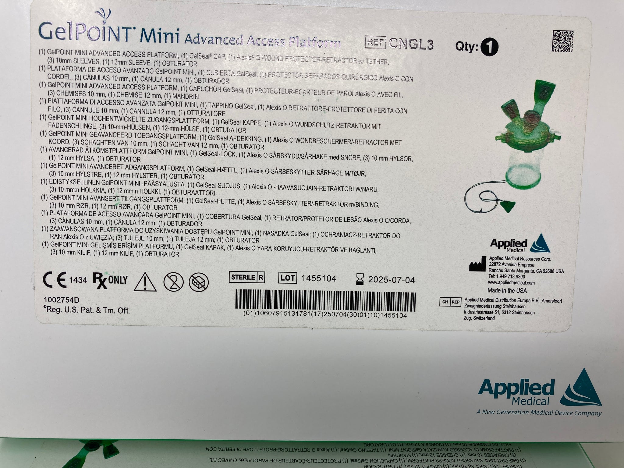 The GelPOINT Mini advanced access platform accommodates multiple instruments through one incision site and may be used alongside ancillary ports or percutaneous instruments to enhance minimally invasive outcomes.